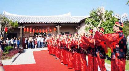 莆田湄洲岛影视城举办一场“穿越”式集体婚礼