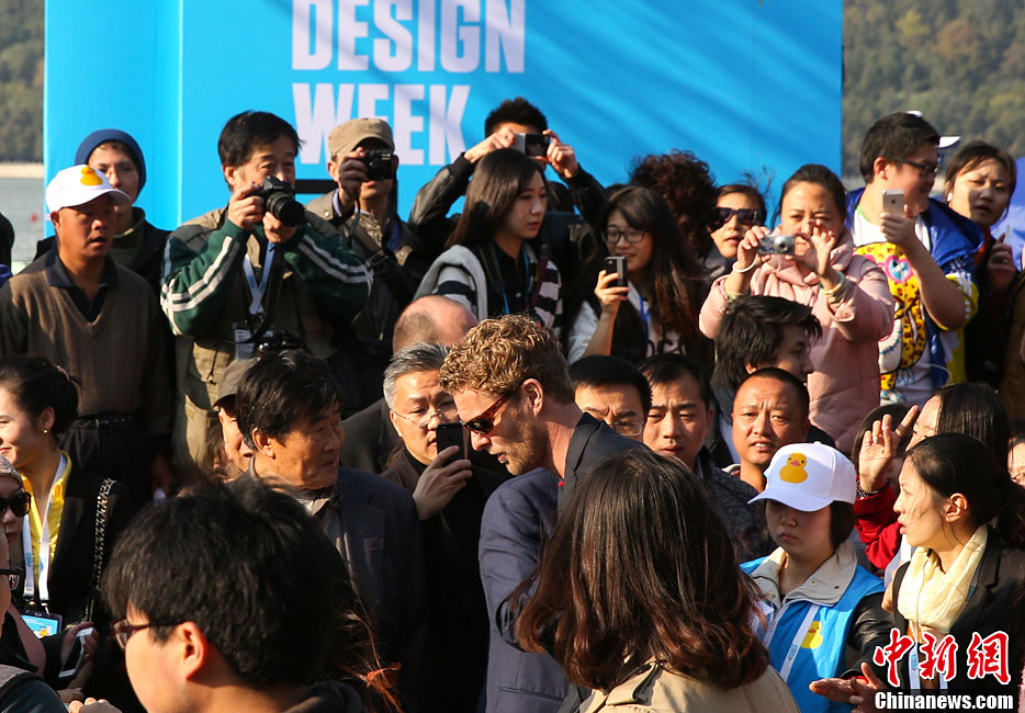 10月24日,“大黄鸭”设计师霍夫曼现身北京颐和园的“跟‘鸭’说再见”活动,引来了众多市民的关注。由荷兰艺术家弗洛伦泰因·霍夫曼设计的“大黄鸭”在颐和园的展出将于10月27日结束。中新社发熊然 摄