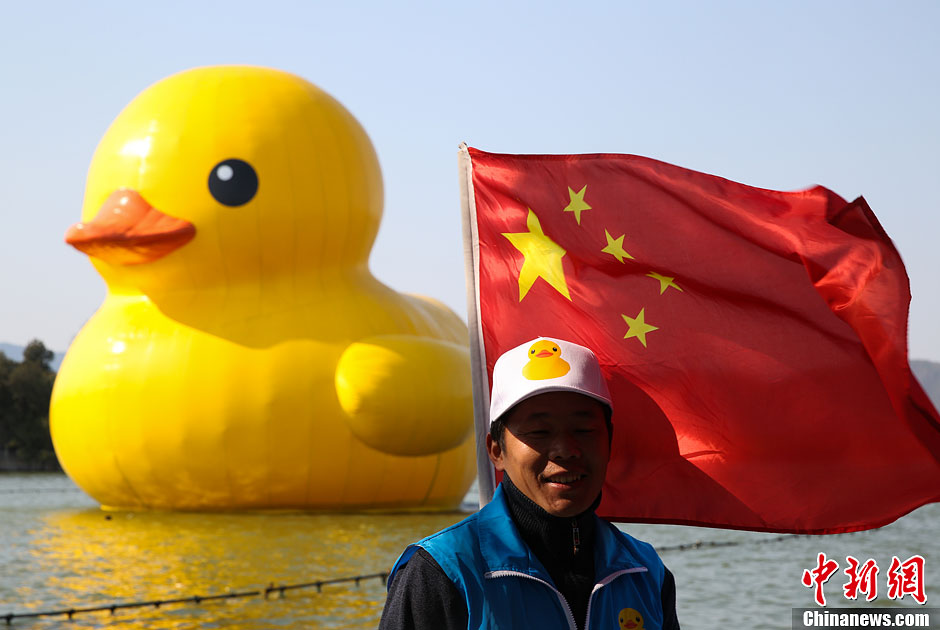 10月24日,“大黄鸭”的中国之旅进入倒计时。由荷兰艺术家弗洛伦泰因·霍夫曼设计的大黄鸭将于10月27日结束其在中国的展出。中新社发熊然 摄