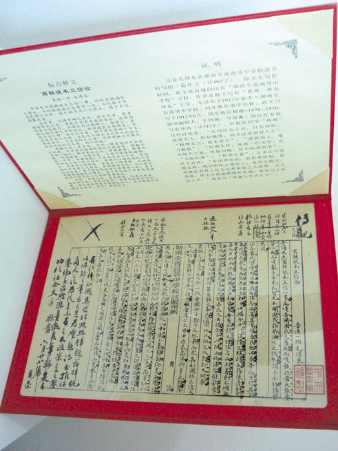 莆田仙游县档案馆获赠“毛泽东中学作文”仿真件