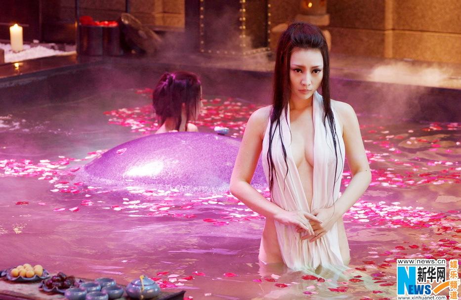 在《四大名捕1》中,江一燕就有和女捕姐妹们集体裸浴的戏,这次《四大名捕2》香艳升级,更和师姐柳岩同浴比拼性感,面对这样的戏,剧组都是“如临大敌”,整个拍摄过程人员控制相当严格,环境布置精益求精,连秦小珍导演都亲自下水,“所有的男工作人员,只有摄影师、导演在里面,然后其他都是女孩,包括秦小珍导演,她们都会跟我们一起下水,因为她要帮我们去铺花瓣什么的,所以她一个人除了要承担导演的工作之外,还有场务各方面,有时候还要在那打着灯在水里面。”