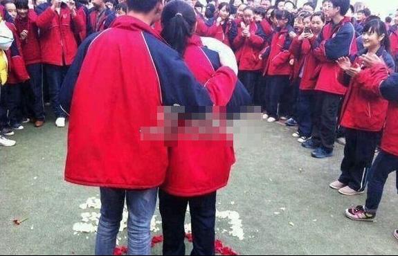 初中生学校操场当众求爱接吻 同学围观祝福
