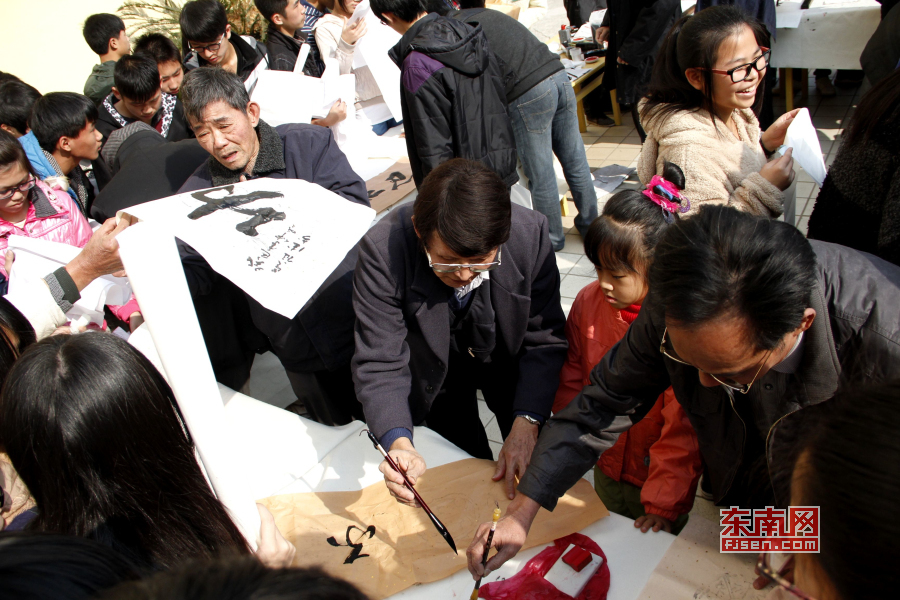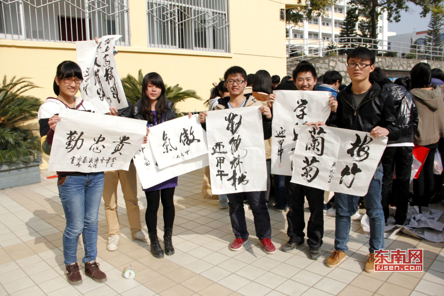 东南网莆田1月2日讯(本网特约记者 蔡建财 祁朝洪 文\图)12月28日上午,莆田市楹联学会2013年年会在莆田八中举行,学会赠送贺寿联、礼品为六位寿星集体祝寿,举行“美丽莆田•宜居港城”与“美丽城厢、平安家庭”诗词楹联征集现场颁奖,福建省楹联学会副会长、莆田市楹联学会会长祁明规在年会上作楹联专题讲座,与会者还在校园内应学子要求进行书法现场笔会,楹联书法家们现场挥毫泼墨,赢得莆田八中师生的热烈欢迎。作为福建省首家“中国楹联教育基地校”,莆田八中已经成功承办了11届莆田市楹联学会年会,这一活动已成为了莆田八中一年一届传统文化艺术节的保留精品节目,活动的举办营造了健康向上的艺术氛围,对繁荣校园文化、构建和谐文明校园有着十分重要的推动作用。