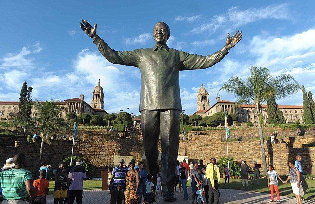在曼德拉下葬的第二天也就是去年12月16日,这座9米高的铜像亮相,矗立在政府总部比勒陀利亚联合大厦旁。雕塑造型为曼德拉伸开双臂,寓意拥抱所有的南非人。