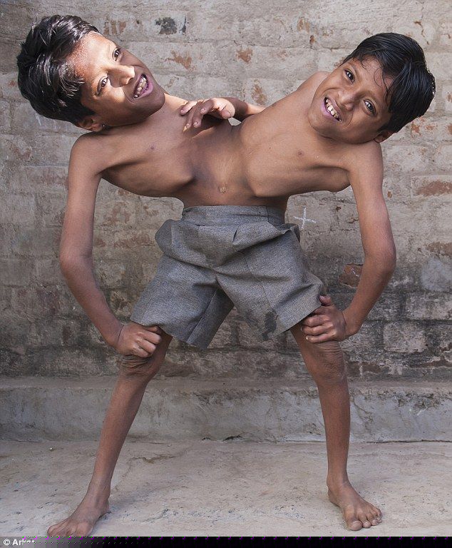 现年12岁的连体兄弟从腰部开始连在一起的,共用一双腿四处行走。然而,他们相处起来却十分融洽和谐,自主清洗、穿衣和进食的本领让身边的每一个人都很震惊。虽然两人共用一个胃,但却有着独立的肺、心脏和大脑。一名当地的医生告诉其家人,他们的身体都很健康但却无法将他们分开。
