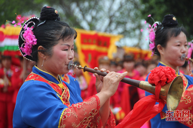 随后,在庄严的乐曲声中,举行鸣号、出幡、升幡、挂灯、升灯仪式,在场的信众们肃立、作揖,怀着崇敬的心情向“天上圣母幡”行注目礼。仪式结束后,广场上进行系列民俗文艺表演,引游客驻足观看。