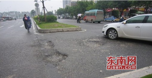 莆田新汽车站前道路破损严重 市民盼早日修复