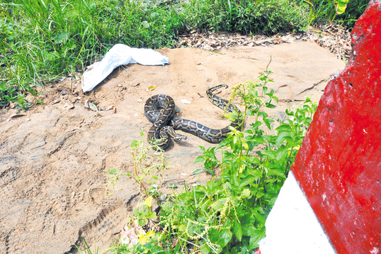 一条贪嘴的蟒蛇闯入村民猪舍想偷吃小猪仔,结果被猪舍主人擒获,有人获悉后想出高价每斤300元买做“盘中餐”,但被爱心村民拒绝了,该村民将蟒蛇送到仙游县林业局,请求将擒获的蟒蛇放生。29日上午,记者跟随林业局野生动植物保护站和林业执法大队人员,将蟒蛇送到龙华金沙与金建交界的深山老林中放生。 29日上午,在仙游县林业局大厅内,记者看到大蟒蛇乖顺温驯,重达20多斤,背上有黄色花纹。由于蟒蛇盘卷一团,无法测量其长度。据林业执法大队负责人介绍,该蟒蛇是鲤南镇涵井村的一位村民抓获的。为了尽快给大蟒蛇找一个安稳的栖息地,仙游林业局执法大队三队长蔡黎忠带领执法人员和野生动植物保护站的工作人员将大蟒蛇带到龙华金沙与金建村交界的深山老林中放生。蔡黎忠告诉记者,放生的地方必须是山林地带,还要有溪流,周边没有居民居住,否则蟒蛇易受惊吓。放生时,记者看到该蛇有如碗口般粗细,有3米多长。蔡黎忠告诉记者,野生蟒蛇为国家一级重点保护野生动物,任何个人不得私自捕捉和贩卖蟒蛇,违规者将受到相应的法律处罚。群众如在野外发现蟒蛇,可通知林业部门前往处理。(莆田晚报 李金春) |