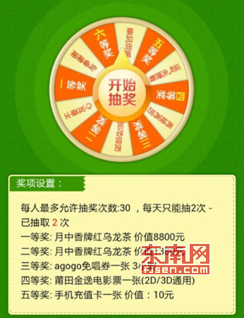 东南网莆田11月18日讯(实习记者 柳烨)昨日,东南网莆田站官方微信公众号正式改版升级。借东南网官微升级之际,为回馈广大网友推出的“幸运大转盘”抽奖活动截至目前已有29名幸运网友抽中不同的奖项,其中有20名中奖网友未及时根据中奖提醒填写手机号和微信码。 根据规则,中奖的网友会收到由东南网莆田站官方微信发送的中奖提醒,用户需根据提醒及时填写手机号和微信码,逾期72小时未填中奖信息将作废,奖品重新放入奖池,由其他网友继续抽取。关注东南网莆田站官方微信公众号,轻松一点,全省热点新闻随心关注,莆田最新资讯轻松掌握。点击抽奖页面右上方分享到朋友圈,让更多的朋友参与进来。轻松读新闻,快乐拿大奖! 抽奖方式:11月16日至11月30日之间,关注莆田东南网官方微信号:p t f j s e n,点击聊天页面右下方互动抽奖,每人每天有两次抽奖机会。
