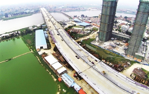 宁海新桥双向8车道,宽41米,通行量相比上游的宁海古桥大幅提升(海都航拍) 东南网7月7日讯(海峡都市报记者 陈晋/文 马俊杰/图)省交通运输厅“五大战役”的攻坚项目之一宁海新桥主桥顺利实现合龙,标志着这座大桥完成了主体结构施工,全面转入桥面及附属工程施工阶段。据悉,宁海新桥将与改造中的涵黄公路相连接,今年底,荔城段引桥工程也将动工建设。据介绍,宁海新桥通车后,从涵江往秀屿港将又多了一条便捷的通道。 宁海新桥的一侧位于涵江白塘镇镇前村,跨越木兰溪,连接镇前村和荔城区黄石镇桥兜村,北接涵黄公路,南接在建的涵港大道,属莆田市综合交通规划中的“三纵四横”快速路规划的重要组成部分。大桥全长1.2公里,其中主桥长1164米,桥面宽为41米,为双向8车道,设计时速为80公里,采用一级公路兼城市快速路标准设计,项目总投资3.08亿元。 据介绍,宁海新桥主桥工程已竣工,大桥将全面转入桥面铺装、引桥及接线互通、绿化施工等后续工程施工,将于8月份完成。 另据了解,因与宁海新桥引桥相连,改造后的涵黄公路,路基面高了约2.5米,车道拓宽至双向6车道,两侧留下约5米宽的道路供村民出行。与宁海新桥连接的路段全长约2公里,整个“白改黑”工程有望于8月份竣工。 |