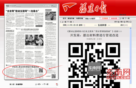 ![]() 《福建日报 东南网事》截图 相关报道: 《莆田秀屿正鼎明珠小区供水管锈蚀 业主:自来水铁含量超标致多人生病》 《莆田正鼎明珠小区供水管锈蚀致病续:秀屿卫生部门未参与验收》 东南网11月2日讯(福建日报东南网记者 王龙风)今年3月,莆田秀屿正鼎明珠小区的业主发现,小区的自来水出现发黄、浑浊现象;有个别业主饮用后甚至出现身体不适的情况,化验结果为“铁含量超标”。业主们经调查发现,开发商违规使用国家禁用的镀锌管作为室内给水管道。“我们向多部门反映,但开发商还是拖着不处理。”业主将此事反映至东南网《直通屏山 省委省政府领导留言板 》后,东南网连续跟踪报道此事,引起各方关注。10月27日,该小区开发商莆田市正鼎房地产开发有限公司表示,愿意出材料费进行管道改造。 水有问题?业主们纷纷投诉 9月30日,莆田秀屿正鼎明珠小区业主在《直通屏山》反映,今年3月份开始,他们发现小区的二次供水水质开始变黄、浑浊,“有一名业主饮用后,出现腰酸的情况。去医院检查发现,是因铁中毒引起肾炎。”“还有一个女的,因为喝了这水拉肚子。”“一名老太太甚至住院了。”业主们纷纷投诉,他们将自来水拿去化验,结果为“铁含量超标”。他们认为,罪魁祸首是小区地下室内的那段镀锌管自来水管道。“因为镀锌水管内生锈了。”业主们说。 据了解,早在2000年,国家就禁止在城镇新建住宅中使用冷镀锌钢管用于室内给水管道。而正鼎明珠小区于2009年预售,2011年交房。业主们据此认为,开发商违规在先,应承担此次自来水污染事件全部法律责任。但业主们表示,他们向住建、卫生等多部门反映,开发商还是以各种理由拖着不予处理,物业则要求他们每户集资500元用于更换管道。 介入调查!将进行管道改造 为此,东南网记者前往秀屿住建局采访。该局质监站站长何子良称,通知虽然“禁止室内使用镀锌管”,但地下室属室外,为了满足水压需要,开发商可以使用镀锌管。秀屿区住建局副局长邱铁兵也表示,目前暂未发现开发商存在违规的地方。 但记者从莆田市自来水公司了解到,早在十多年前,自来水公司就已淘汰镀锌管材质管道作为自来水供水管道。“不管室内室外,我们都不用镀锌管!”该公司相关技术人员表示,因镀锌管材质的供水管容易结瘤,使用数年后管内还容易产生大量绣垢,且夹杂着不光滑内壁滋生的细菌,对自来水造成二次污染,会危害到人体的健康。 10月12日,记者还从秀屿区卫生监督所了解到,该所并未参与正鼎明珠二次供水工程竣工验收,接到该小区业主投诉后,已介入调查。 日前,该事件有了新进展。10月27日,莆田市正鼎房地产开发有限公司相关负责人表示,愿意出材料费,帮助业主进行管道改造。但该负责人表示,正鼎明珠小区管道都是按照规划设计进行,并未违规或者使用不合格的产品。 莆田市住房乡和城建设局有关负责人表示,他们将继续跟踪和督促秀屿区住建局和开发商尽快落实解决此事。 |
