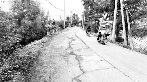 村道破烂不堪,给村民出行带来困难 东南网11月4日讯(海峡都市报记者 蔡学伟 文/图)莆田荔城区黄石镇的海滨村位于兴化湾畔,该村与外界连接的原本是一条狭窄的堤坝路。22年前,村民们自发筹资并投工投劳,修建起了一条宽5米长800多米的水泥村道,终于解决了出行问题。然而近几年来,由于附近沙厂的出现,大量运沙车辆将这条村道碾得破烂不堪,村民出行又变得困难了。 运沙车不断增加 道路越坏越严重 村民黄先生告诉记者,导致村道变差的是村里一家名叫“勇力建材有限公司”的沙厂。这个沙厂是2001年进驻的,刚开始时,在村道上运行的货车还不多。这五年来,进出沙厂的运沙车越来越多,每天都能达到数百辆。到了夜间,甚至有16轮的巨型运货车出现。这些车辆碾压村道,导致村道严重受损。 村民黄某荣介绍说,据该村老协会统计,从2010年以来,由于路况变差,造成村民骑摩托车、自行车摔伤的事故屡有发生,截至目前共有260多人次的村民摔伤过。他还叫来了几位曾经受伤的村民,叙述摔倒的经过。 “道路只有5米宽,而一辆中型运沙车的宽度就在2.2米以上。”村民说,而且运沙车往往行驶在村道中间的位置,再加上路况极差,村民骑车摔伤就不足为奇了。现在,每天必须经该村道进镇里的村民在600多人,这些村民都必须和大货车挤道,十分危险。 镇政府:后续将建新路 代替目前的村道 黄石镇政府海滨村的包片干部陈副镇长介绍,造成通往海滨村的村道破损严重的其实有两家企业,除了上述的沙厂外,湄渝高速公路修建时,大量工程车也对该村道造成了破坏。目前,镇政府已和这两家企业进行联系,并准备对破损村道进行评估,协调这两家单位按比例分担修路费用。 陈副镇长说,除了修复原有村道外,镇里也在考虑新建道路替代目前的村道。随着宁海匣控制性导流工程的建设,将在附近修建新的道路,取代目前的村道。该工程一旦投入建设,将彻底改变海滨村及周边村庄的出行环境。 |