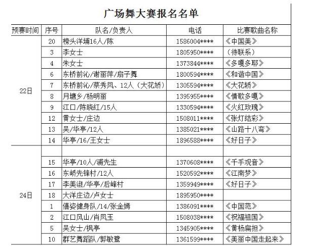 ![]() 参赛名单 东南网莆田4月19日讯(本网记者 董太领)青春不老,生活更好。今年,在母亲节来临之际,东南网莆田站应广大广场舞热爱者的要求,继续举办第三届广场舞大赛。目前,大赛报名已截止,共有18支队伍参赛。首场海选赛将在本周五晚七点举行,第二场海选赛将在本周日晚七点举行。届时,欢迎市民前往莆田万达广场为参赛队伍们加油鼓气。 据悉,所有参赛的队伍,都将获得团体精美大礼包一份,获胜团队最高还可赢得3000元奖金。 海选赛时间排表 参赛要求 1.15人以下一组,从中选出10组进入决赛。 2.统一服装。 3.选手自备服装道具、MP3格式的音乐。 4.歌曲及舞蹈内容健康向上符合活动主题。 奖项设置 第一名(1组):3000元奖金 第二名(1组):2000元奖金 第三名(1组):1000元奖金 鼓励奖(3组):奖金500元 ![]()