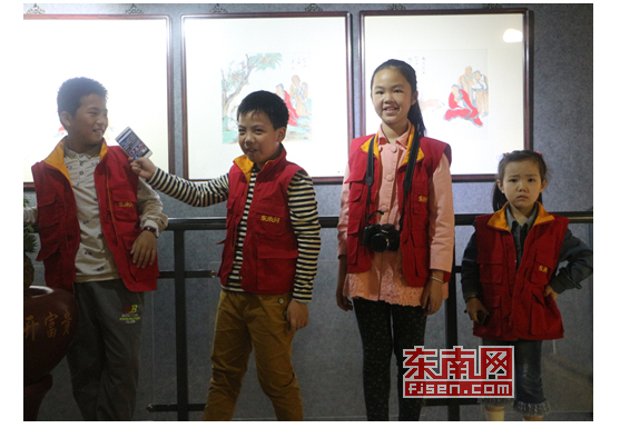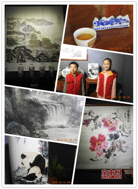 今日上午,东南网小记者来到荣百堂,逼真写实的水墨画和色彩靓丽的瓷器画一下子吸引了小记者的眼球。小记者们分成两两一组,边参观画展,边分别寻找自己想要拍摄的素材,选定之后,以自己的角度用单反或者手机对所选素材进行拍摄,并不时向大记者提问,修改不足之处。