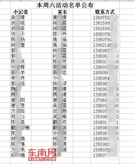 活动名单公布 东南网莆田6月10日讯(本网记者 董太领)11日上午,第十一个中国文化遗产日系列活动将在莆田市群众艺术馆举行。当天上午,东南网将组织三十名小记者走进莆田市群众艺术馆,零距离接触非遗文化。今日,参与的小记者名单公布。 活动现场,小记者将参观非遗舞台精品展演、非遗摄影图片展、“莆阳风味”食品展和传统技艺展,并体验制作土陶传统技艺、仙作榫卯互动和黄氏面塑等系列非遗文化活动。 活动时间:2016年6月11日上午9:00-11:00(本周六) 活动地点:莆田市群众艺术馆 关注“东南网小记者”微信1141141233或“少通社” 咨询热线:0594-2535366或13799008201 备注: (1)少通社(东南网)莆田小记者活动为公益活动,无任何费用。(各携带一名家长参加,自带笔、纸、摄影器材等采访设备) (2)活动结束后,小记者们需各自采写一篇与此次活动有关的稿件,发于“莆田东南网”微信板块“莆田13楼”。优秀稿件将获得下期参加活动的直通券。