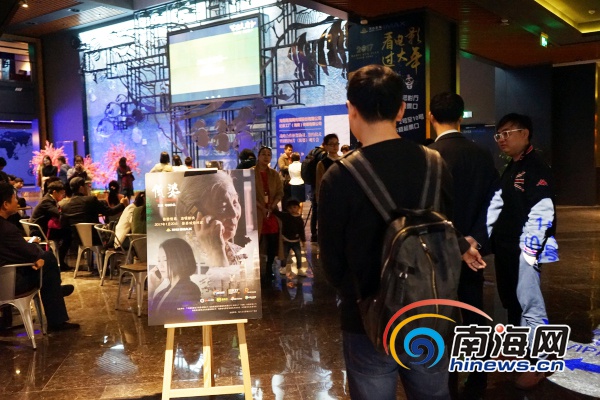 春节特别策划微电影《侬婆》展板吸引观影者驻足拍照。南海网见习记者 姚少龙 摄