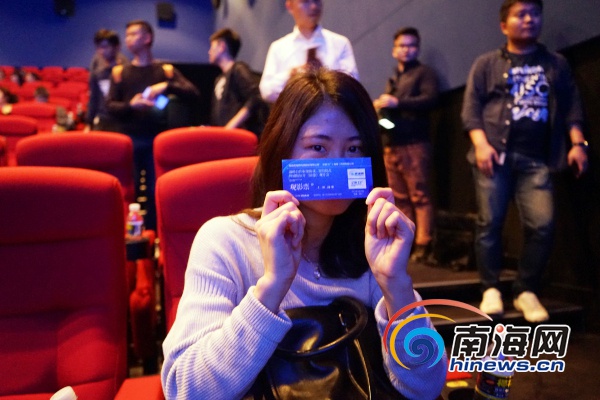 持票等待观看微电影《侬婆》的观众。南海网见习记者 姚少龙 摄