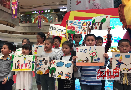 小朋友们展示自己的画作 东南网莆田5月1日讯(本网见习记者 朱艳贞)4月30日,由荔城区委宣传部、荔城区委文明办、荔城区总工会、荔城区社科联、东南网莆田站主办,FM103莆田音乐交通广播、城市V频道、少通社七田阳光、馨宜新天地协办的五一节“画话劳动 最美童心——用一幅画向劳动者致敬”活动在馨宜新天地顺利举行。活动现场,将近200位可爱的小朋友参与进来。 当天,小朋友们坐在自己的小板凳上,发挥自己天马行空的想象力,用自己稚嫩的小手,在画纸上描绘出心中对劳动者的敬意。每位小朋友在完成自己的作品后,登上舞台,向大家介绍自己作品的内容和其中的寓意。