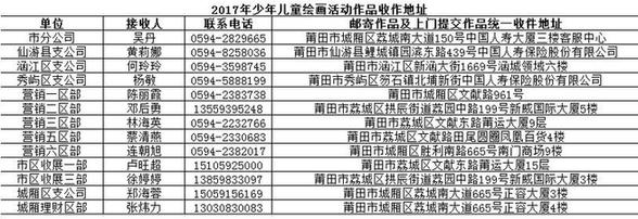东南网莆田6月1日讯(本网见习记者 徐嘉馨)如果你的孩子喜欢画画、想象力丰富,对发明创造感兴趣,就快来加入“国寿小画家”队伍!2017年第七届“国寿小画家”少年儿童绘画活动等你来战!凡报名参加少儿绘画活动的小作者家庭,均有机会受邀参加“要跑700”的家庭亲子趣味活动。报名及作品提交时间为即日起至6月30日。 本届活动由中国人寿保险股份有限公司莆田分公司、莆田市美术家协会、东南网莆田站共同主办,以“牵手国寿 智慧生活”为主题,征集表现“智慧生活、科技人生”为内容的画作,充分发挥少年儿童的想象力。 本次活动面向全莆田市3-16周岁的少年儿童,依照年龄段分组如下:儿童组(3—10岁),少年组(11—16岁)。奖项设置:儿童组,一等奖3名、二等奖6名、三等奖9名、优秀奖82名,共计100名。少年组,一等奖3名、二等奖6名、三等奖9名、优秀奖82名,共计100名。 所征集的绘画作品由中国人寿保险莆田市分公司携手莆田市美术家协会开展市级评选活动,评选出的市级优秀作品和推荐作品参加省级评选,其中,莆田市级优秀作品200幅。入选优秀作品奖的200位选手都将获得由市美协署名认证的荣誉证书及奖品。莆田市级还将举办现场颁奖活动,邀请获奖作品的小作者与监护人参加现场颁奖及优秀作品展活动。中国人寿保险莆田市分公司将邀请莆田市美术家协会专家组作为颁奖嘉宾参与现场颁奖。 活动详情 作品要求: 本次活动征集的作品类型包含拼贴画、国画、油画、版画、水彩画、水粉画、素描、速写等不少于12000幅,可自行命名。相关要求如下:1.作品绘画材料不限,但必须是平面作品。2.作品尺寸不得大于四开(40×60厘米),不小于八开,国画作品不得超过四尺斗方。 报名方式: 1.预约报名。工作人员通过“云助理-国寿e店-国寿活动”分享转发活动电子邀请函给客户;客户通过电子邀请函留下姓名及手机号码预约报名。 2.作品提交。工作人员根据客户信息联系客户,将参赛小作者信息补充完整,并上门收取画作,将画作提交至市县公司柜面,或客户直接将画作提交到市分公司客服中心。 3.系统录入。各营业单位将收取到的画作统一在总公司报名系统获取参评作品编号,完成报名系统录入工作。 作品提交方式和要求: 1.由工作人员上门收取作品送到市、县指定收件地点提交给公司指定人员,由公司统一在总公司报名系统获取参评作品编号。 2.由客户直接提交到市分公司指定地点,由公司指定人员接收后(提醒客户到公司网站或现场查看活动征稿启事、活动公示等),统一到总公司报名系统获取参评作品编号。 收画地址: