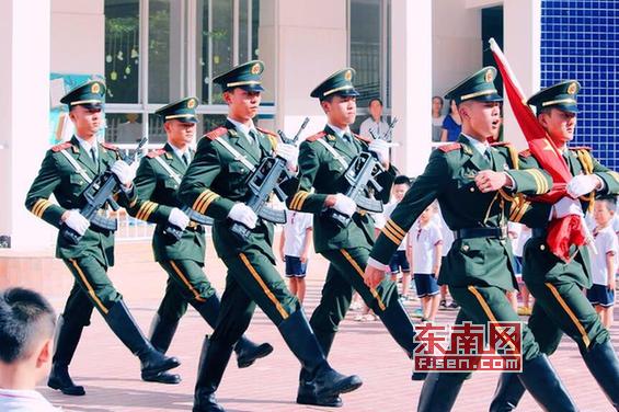 在学生和家长们的注目下,官兵们庄严的将国旗升起,一举一动都彰显着敬重与热爱。 |