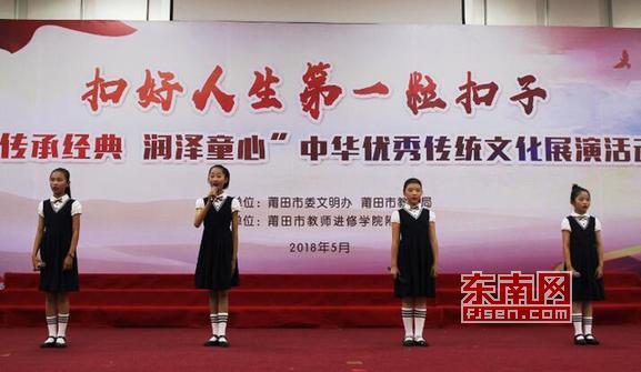 开场表演《舞狮》 东南网莆田5月24日讯(本网记者 张凯娟)为创新未成年人主题教育实践活动,深化中国梦和社会主义核心价值观教育,5月24日下午,“传承经典 润泽童心”中华优秀传统文化展演活动在莆田市教师进修学院附属小学举行。本次活动由莆田市委文明办、莆田市教育局主办。