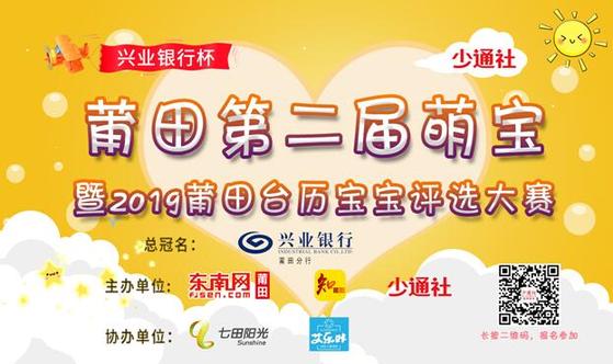 东南网莆田12月3日讯 由兴业银行莆田分行总冠名,东南网莆田站、知莆田、少通社联合主办的“兴业银行杯”莆田第二届萌宝暨2019莆田台历宝宝评选大赛报名已正式结束。今日起,大赛开始正式进入紧张的投票阶段,投票截止时间为12月7日,共计5天。福建地区的亲友们,赶快为你们心目中的萌宝投上宝贵的一票,让萌宝秀出最闪亮的自己! 据悉,本次活动针对6个月-6周岁儿童,报名成功后,将进入线上投票时间。活动最后,主办方将根据投票最终票数确定排名,并在2019年1月12日进行颁奖仪式。 【活动详情】 参赛年龄:6个月-6周岁儿童 报名时间:2018年11月19日-2018年11月30日 投票时间:2018年12月3日-2018年12月7日 投票结果公示时间:2018年12月8日 颁奖典礼时间:2019年1月12日 投票方式: 第一步,关注 “少通社”微信公众号; 第二步,点击进入“萌宝大赛”活动页面; 第三步,选择赛区,点击心仪的萌宝图片下方的“投票”,进行语音验证,就为可以心仪的宝贝投票(投票区域仅限福建地区手机用户)。 奖项设置: 动感萌宝奖(1-12名) 魅力萌宝奖(13-30名) 潮流萌宝奖 (若干名) 组委会咨询电话:13799008201 |