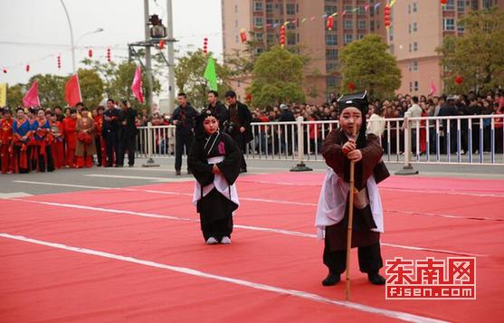 折子戏《状元与乞丐》选段、山歌《三十六送》、文十番《风送长江一叶帆》、舞蹈《木兰袖韵》、伡鼓表演……当天下午,富有莆仙特色文化的文艺节目轮番上演,为“打铁球”表演热场。