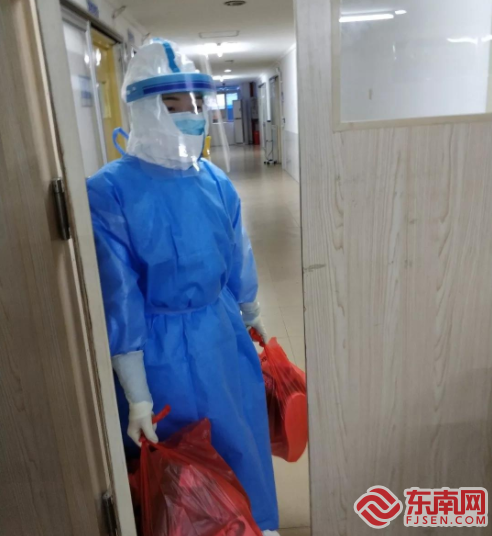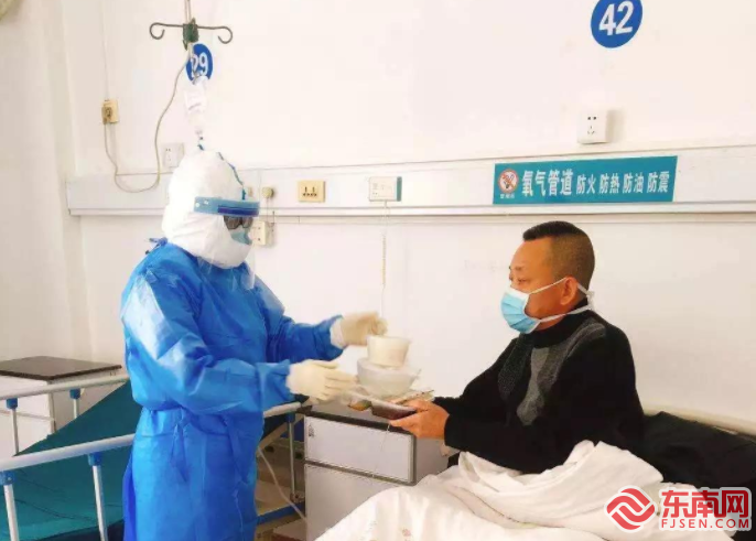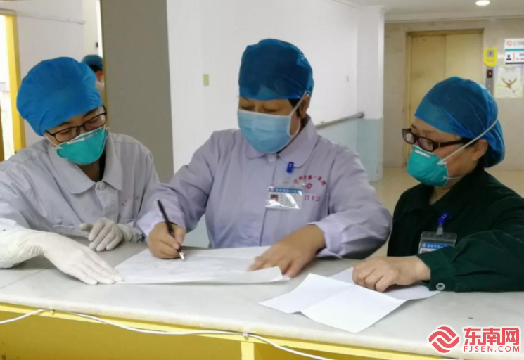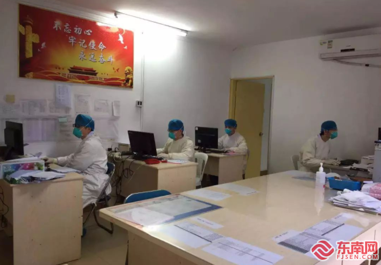 医生们开医嘱、做病历 东南网莆田2月4日讯(本网记者 吴炳端 通讯员 赖越聪)新型冠状病毒感染的肺炎患者如何治疗?一线医护人员如何工作?让我们走近那些平凡而伟大的“白衣战士”,记录他们的坚守和奉献。 自疫情出现以来,莆田市第一医院感染性疾病科病房就作为收治疑似患者的隔离病房。自收治第一例疑似病例后,隔离病区的医务人员就一直坚守防疫前线,从未归家。随着疑似患者的增加,床位也不断增加,现在有50多位医护人员在隔离病房日夜奋战。 隔离病区的感染风险最高,医护人员进入隔离病区前,必须做好个人防护措施,穿戴个人防护用品包括戴N95口罩、戴帽子、穿防护服、戴手套、戴防护眼镜、穿防护鞋套……面对如此冗长繁琐的穿戴步骤,每一次的穿戴对于医护人员来说都是一次挑战。防护服不透气,医护人员闷在里面就像进了个蒸锅,稍微动一动,身上就开始出汗,而且防护服里视野受限,听力也受限,这种种困难与不便对于他们来说无疑是难上加难。在隔离病房中,医护人员不仅要给患者医学上的治疗,还要对患者进行生活上的护理。每天在病房之间连轴转,对医护人员的体力也是一种考验。 “查房、打针、输液、换液、采集标本......其实我们更多是在熟悉、适应我们这套装备,尤其是整个头部,怕口罩戴不紧密,怕护目镜掉下来,因此在戴的时候我们都尽量保证在最紧密的状态,但是不到半小时的时间,就感觉头好痛、呼吸好困难,内心挣扎了一下,深吸一口,暗暗下定决心:坚持下去,坚持一定可以做到!”