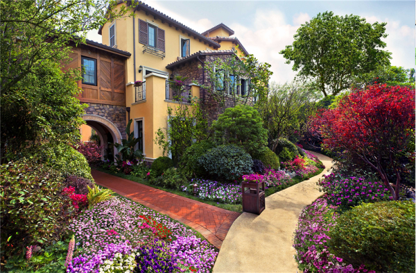 (龙湖地产 供图) 虽由人作,宛自天开 中国的造园艺术,以追求自然精神境界为目的,从而达到"虽由人作,宛自天开"的审美旨趣;龙湖五维园林生态即师法自然,在紫宸府,以复合层次的乔、灌、草、花构建五重景观系统,构建高低有序、科学层次的景观绿化;超50种不同植物品种搭配,精心分配季节花木,从时间维度打造春赏花,夏观叶,秋收果,冬望枝的四季景观。