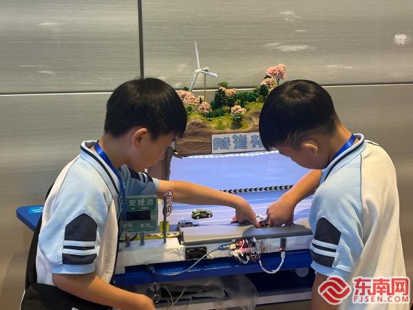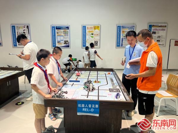 竞赛现场 东南网莆田7月3日讯(通讯员 曾萍 文/图)7月1日上午,由莆田市科学技术协会、莆田市教育局联合主办的2023年莆田市青少年机器人竞赛在莆田市科技馆举行。本次竞赛设置机器人综合技能比赛、机器人极限挑战赛等六个比赛项目,143支队伍参赛。 机器人绕障碍、机器人搬运小球到指定位置、酒驾检测机器人……竞赛现场,参赛选手们手持遥控器全神贯注地操控着机器人完成各项任务。评委们根据机器人完成“任务”的表现现场评分,最终选拔出36支优秀队伍代表莆田市于7月底赴厦门参加省级竞赛。