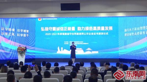 活动现场 东南网莆田12月18日讯(见习记者 曾家豪 文/图)12月15日,莆田市“弘扬守重诚信正能量,助力绿色高质量发展”主题活动暨2020—2021年度福建省守合同重信用公示企业证书颁发仪式在三棵树总部办公大楼举行。