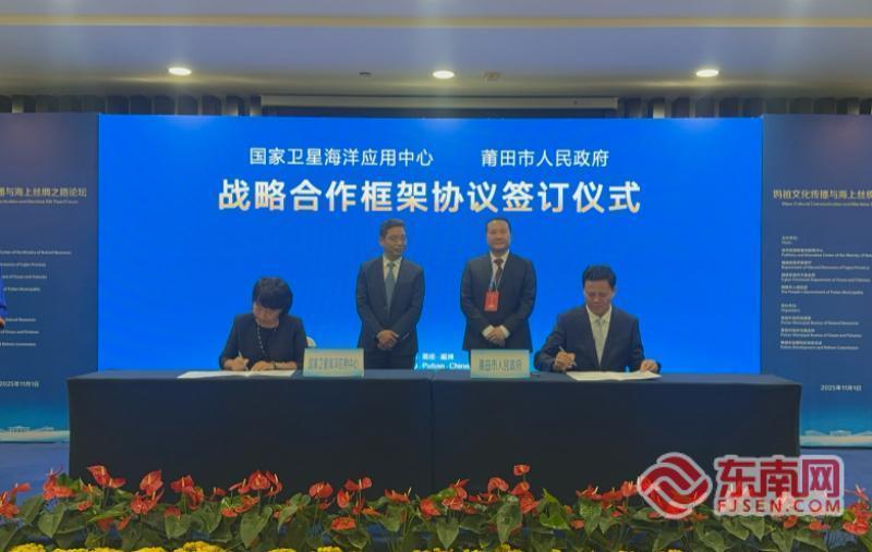 当天,国家卫星海洋应用中心与莆田市人民政府签订战略合作框架协议。据悉,11月2日,在世界妈祖文化主论坛上,自然资源部党组成员、副部长、国家海洋局局长孙书贤将代表自然资源部宣布将新造的海风海浪探测卫星命名为“妈祖号”。