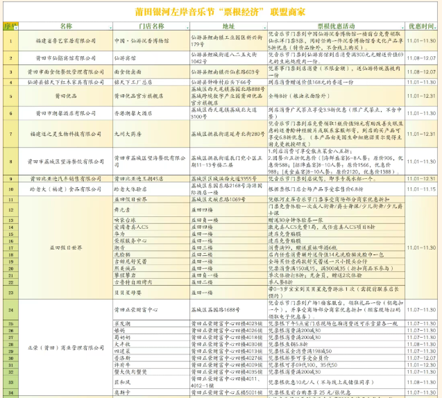 银河左岸音乐节“票根经济”联盟商家