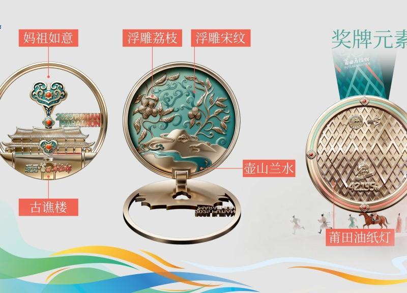 发布会上还公布了完赛奖牌,奖牌设计有妈祖如意、古谯楼、浮雕荔枝、浮雕宋纹、壶山兰水以及莆田油纸灯笼等莆田文化元素。一枚奖牌,一段镌刻于金属上的莆田叙事,让奔跑的终点不仅是成绩的刻度,更是与千年莆田的邂逅。
