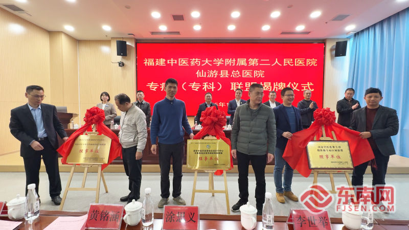 期间,福建中医药大学附属第二人民医院纪委书记陈奇慧与仙游县总医院主持党委工作、纪委书记陈素琴签约《福建中医药大学附属第二人民医院医疗联合体合作协议》,以及《国家中医优势专科慢性便秘专病区域联盟协议》《国家中医优势专科慢阻肺专病区域联盟协议》《国家中医优势专科脑血管病专病区域联盟协议》。两院相关人员共同为“慢性便秘专病联盟”“慢阻肺专科联盟”“脑血管病专科联盟”揭牌,标志着双方合作正式步入实质性阶段。