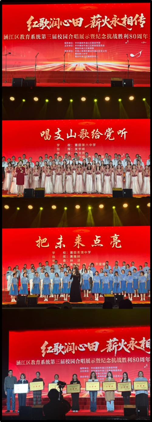 日前,由中国人寿保险股份有限公司莆田市涵江区支公司(以下简称“莆田涵江国寿”)协办的涵江区教育系统第三届校园合唱展示活动圆满落幕。 决赛现场,来自全区中小学幼儿园的15支代表队、1000多名青少年齐聚一堂,以歌声表达对祖国的深情。《我爱你,中国》《祖国不会忘记》《唱支山歌给党听》等经典歌曲接连唱响,现场气氛热烈,展现青少年传承红色基因、奋发向上的精神风貌。 此次活动不仅是一场美育展示,更是一堂生动的思政课,在少年心中深植爱国种子。莆田涵江国寿作为协办单位,积极支持活动开展,体现了企业服务社会、心系教育的责任担当。下一步,莆田涵江国寿将持续以“保险护航”守护每个家庭的希望,陪伴青少年健康成长,共筑美好未来。(莆田涵江国寿 供稿/图)