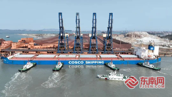 东南网莆田12月30日讯(本网记者 陈玮 金晶晶 通讯员 吴志)12月27日,晨曦初露,莆田市东吴港区罗屿作业区,新加坡籍40万吨级铁矿船“远神海”轮在移民管理警察的监护下,顺利完成39万吨巴西铁矿石卸载作业。作为东南沿海唯一能从容接待全球最大40万吨级矿石船的港口,这次作业是莆田向“亿吨大港”目标迈进的又一个坚实足印。