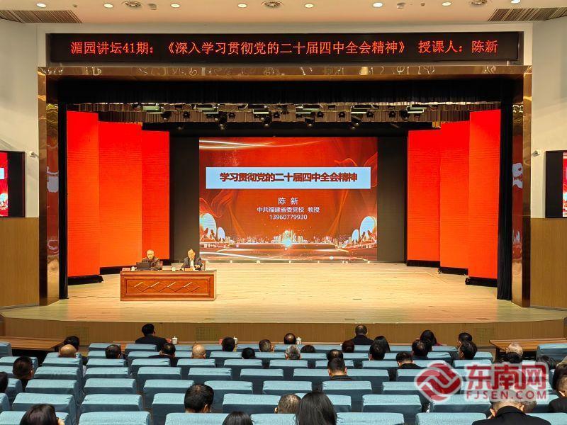 东南网莆田1月27日讯(通讯员 詹菁 吴伟锋 文/图)1月26日,湄洲湾职业技术学院第41期湄园讲坛举行,邀请福建省委党校(福建行政学院)经济学教研部教授陈新作《深入学习贯彻党的二十届四中全会精神》专题讲座。