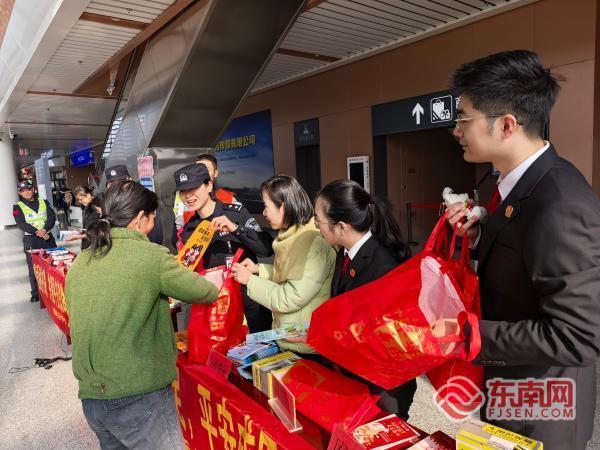 活动现场 东南网莆田2月4日讯(通讯员 张杰 文/图)为全力护航春运,保障旅客平安有序出行,2月3日,福州铁路公安处莆田站派出所联合秀屿区法院、区检察院、区护路办及福州工务段等多部门,在莆田火车站内共同组织开展“战春运、保安全”大型集中宣传活动。 活动期间,民警与各单位人员深入车站进站口、候车大厅、售票厅等客流密集区域,通过设立联合咨询台、悬挂主题横幅、陈列宣传展板、发放安全知识手册和宣传单页等多种形式,与广大出行旅客开展面对面、零距离宣传。 宣传内容紧密结合春运出行特点,重点围绕旅客乘车安全须知、防盗防骗技巧、铁路安全法规、爱路护路知识以及突发事件应急应对措施等展开详细讲解。工作人员结合典型案例,以通俗易懂的语言进行普法宣传与安全提醒,耐心解答旅客咨询,引导大家自觉遵守法规,增强自我防范意识。 此次活动有效拓展了宣传覆盖面,进一步增强了旅客的安全意识和法治观念,为营造“平安、有序、温馨”的春运出行环境奠定了坚实的群众基础。 |