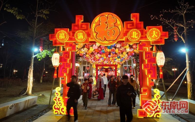东南网莆田2月11日讯(本网记者 吴炳端 文/图)2月10日晚,以“荔林夜宴·马跃灯华”为主题的2026年莆田北大新春灯会在荔城区西天尾镇北大村荔林水乡公园正式拉开帷幕。本次灯会依托北大村独特的荔林水乡特色,巧妙融合马年生肖元素,打造了一场跨越古今、蕴含深厚文化底蕴且极具现代时尚感的光影文化盛宴,吸引了众多市民和游客前来观赏体验。