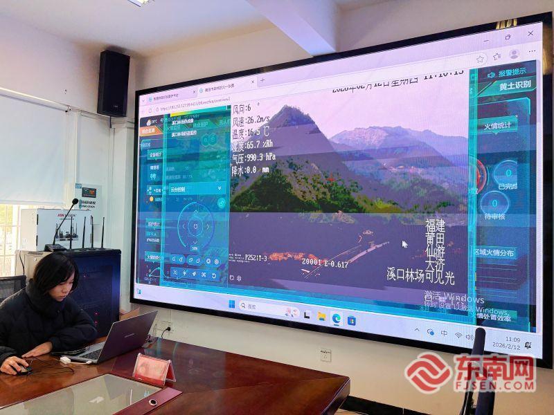 仙游溪口国有林场工作人员查看瞭望塔传回的画面。卢建伟/摄