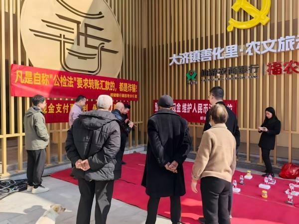 书法家现场挥毫泼墨 为提升农村地区金融知识普及程度,切实保障村民金融权益,近日,邮储银行莆田市分行运营管理部联合中国人民银行莆田市分行货币金银科,走进仙游县大济镇乌石村,开展一场精彩纷呈的金融知识宣传活动,为村民们送上一份兼具实用知识与新春欢乐的“大礼包”。 活动现场,一条条鲜艳的红布条格外引人注目,“整治拒收现金,维护人民币法定地位”“现金支付更便利,使用现金更安全”等标语,清晰明了地传达着关键信息,营造出浓厚的宣传氛围。工作人员热情地向村民发放精心编制的宣传单册,内容丰富实用,涵盖人民币爱护知识、假币辨别技巧以及拒收现金的危害等。针对村民们普遍关心的假币问题,工作人员现场演示“一看、二摸、三听、四测”的辨别方法,耐心细致地讲解人民币作为法定货币的重要性,强调任何单位和个人都不得拒收现金,让村民们深刻认识到维护人民币法定地位的必要性。