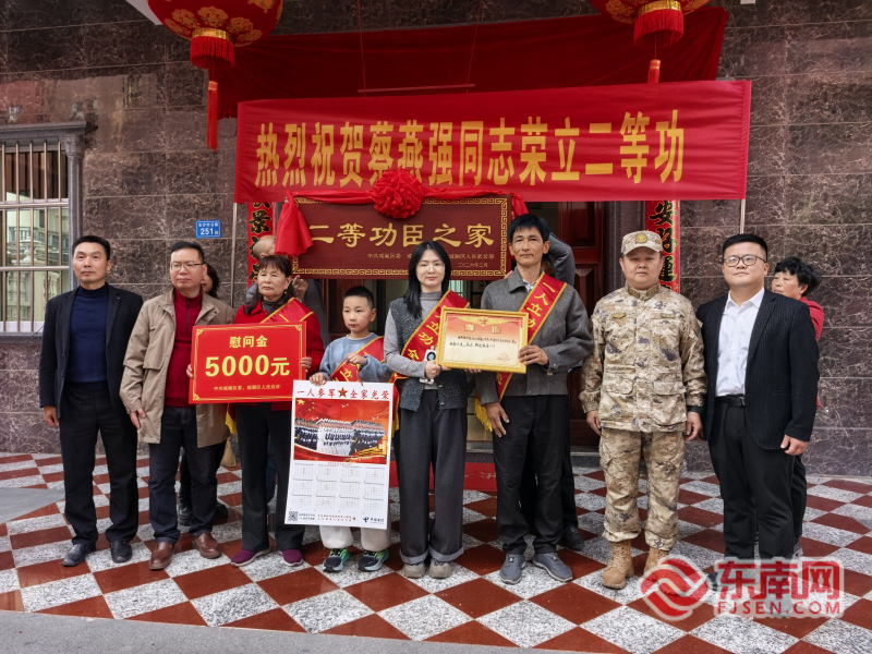 东南网莆田2月25日讯(通讯员 曾德喜 李琳 文/图)近日,莆田市城厢区退役军人事务局、城厢区人武部、东海镇联合组成的拥军优属慰问小组,为荣立部队二等功的现役军人蔡燕强家庭送上立功喜报和“二等功臣之家”功勋牌匾,让军人军属共享荣光、感受尊崇。
