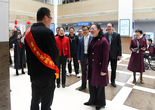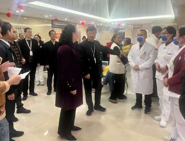 慰问现场 当天上午,姚冰珊一行前往莆田学院附属医院延寿院区急诊医学科、心血管内科及门诊大楼,看望一线医护人员和党员志愿者。她详细了解重症救治进展、党业融合实践、就诊流程优化以及医患沟通情况,对医院在节日期间保持高效运转表示肯定。她指出,要坚持党建引领,深化“党建+”融合模式,以高质量党建赋能学科建设;要加快推进与北大肿瘤医院等高水平医疗机构的深度合作,打造省级区域医疗高地;要持续优化急危重症救治体系,真正把优质医疗资源转化为更高水平的救治服务能力,更好地造福莆田及周边地区群众。 当天下午,姚冰珊一行前往莆田学院附属医院梅峰院区,深入急诊科、产科病房和儿科病房,实地查看病区环境,详细了解节日期间分娩数量、母婴安全保障措施落实情况,以及儿童呼吸道疾病的接诊与救治进展。姚冰珊对医护人员放弃休假、连续奋战的奉献精神给予高度肯定,勉励大家继续打磨服务细节、提升诊疗能力,用心用情守护好每一位妇女儿童的健康。