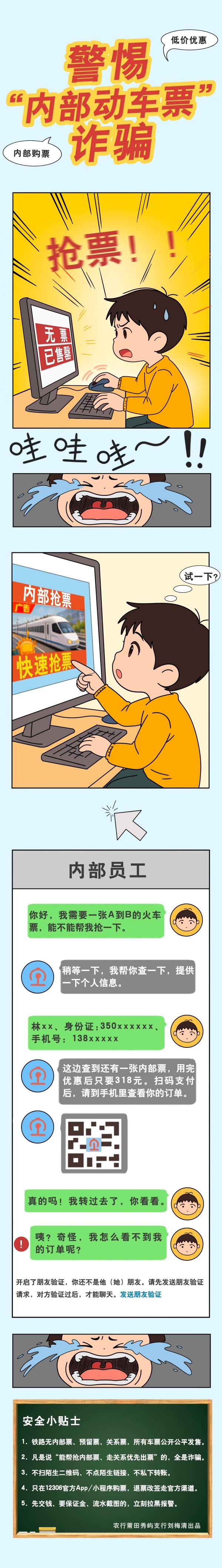 原创漫画|农行莆田秀屿支行:警惕“内部动车票”诈骗
