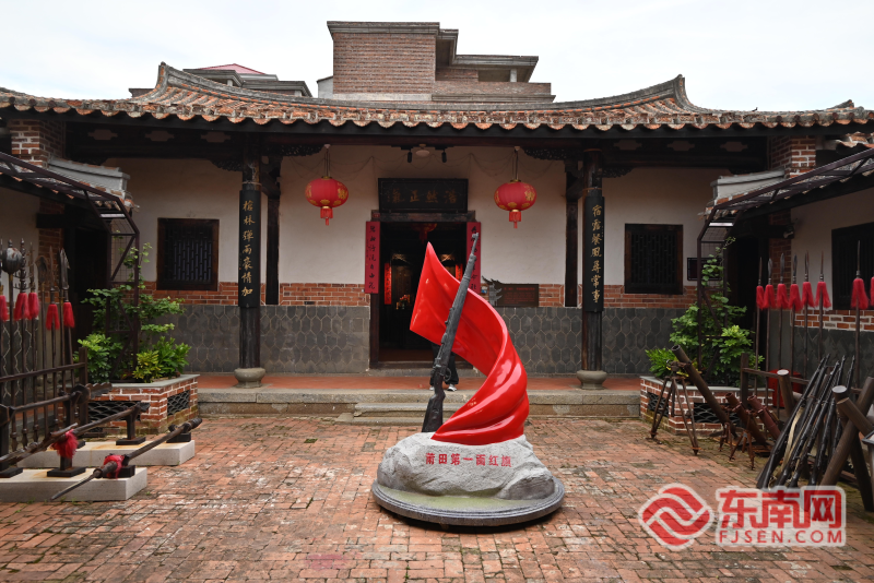 从上塘驱车向西,不过十分钟,便进入三珠片区——这里,是解放莆田城第一面红旗的诞生地。走在宽阔笔直“三珠红色迎宾大道”上,红色地标熠熠生辉,往来游客循着红色足迹,聆听解放莆田城第一面红旗诞生的革命故事。路的尽头,是修葺一新的闽中游击队珠江中队旧址和三座厝古民居化身红色文化馆。