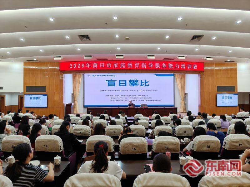 东南网莆田4月15日讯(江瑞鑫 文/图)为深入实施家庭教育“一法一条例”,建强家庭教育指导服务队伍,4月14日,莆田市妇联、市教育局联合举办2026年全市家庭教育指导服务能力提升培训班。各县(区、管委会)妇联、教育系统相关负责人、乡镇(街道)及村(社区)妇联主席、家庭教育特派员、讲师及“爱心人士”等参加培训。