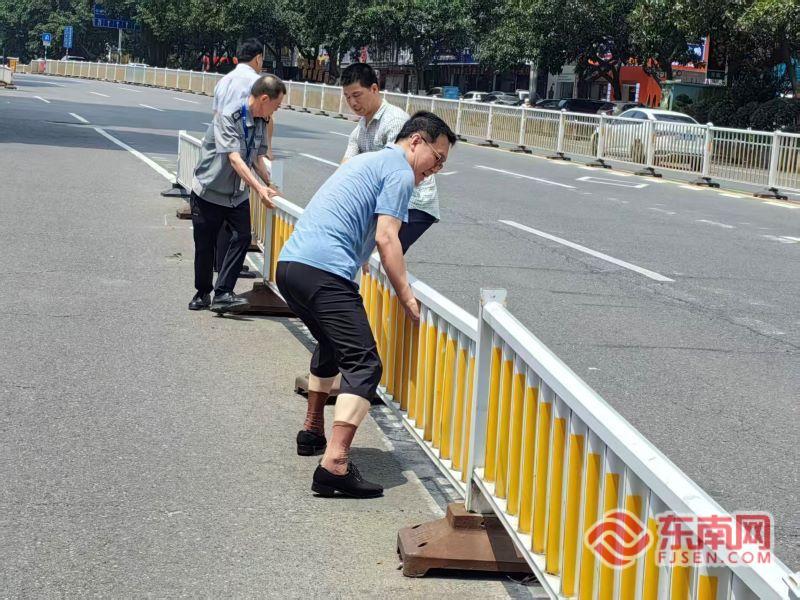 张荔华帮助修复社区外的交通栏杆。受访者供图
