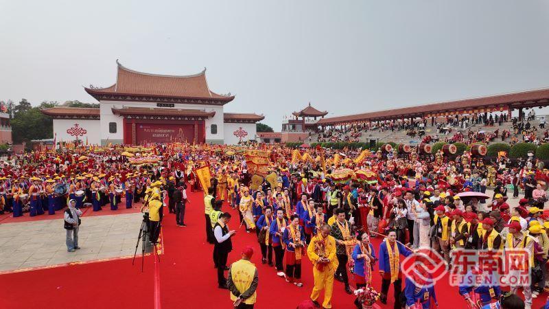 东南网莆田4月18日讯(曾家豪 通讯员 程黎婷 文/图)4月17日(农历三月初一),“天下妈祖回娘家”启动仪式在莆田湄洲妈祖祖庙天后广场举行。来自海内外一百多家妈祖文化团体代表、近万名嘉宾齐聚湄洲岛共襄盛会。