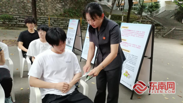 涵江法院工作人员分发宣传手册。 廖秋玲 摄 庭审结束后,涵江区人民法院工作人员在活动现场设立普法宣传点,向大学生们分发《中华人民共和国环境保护法》《中华人民共和国野生动物保护法》以及全国生态日专题宣传单等资料。法官与法官助理“面对面”普法,围绕“生态环境保护的重要性”“破坏生态环境需要承担的法律后果”等板块进行了详细讲解。 “以前觉得法律离生活很远,今天通过模拟法庭亲眼看到村民因为捕猎白鹇可能面临刑事处罚,才真正明白生态保护不是一句空话。”参与活动的大一学生王心莹说道。 生态兴则文明兴,青年强则国家强。这场“法治+生态”的沉浸式课堂,不仅让法律条文走出书本,更让生态安全的种子在青年心中生根发芽。未来,莆田学院环生学院将持续推动法治教育与生态实践深度融合,让青春在守护绿水青山、维护国家安全的热火实践中绽放绚丽之花。 |